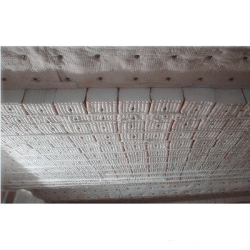 臺車爐墻結(jié)構(gòu)可采用全耐火纖維爐襯。由于爐溫在850-1150度左右,可選用標準或高鋁陶瓷纖維。具體結(jié)構(gòu)為一層30mm厚的背襯陶瓷纖維毯作為平鋪,再加300mm厚的陶瓷纖維模塊作為工作層,模塊與模塊非膨脹方向用20mm纖維毯做補償。