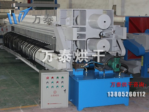 板框式壓濾脫水機(jī)是通過板框的擠壓,使污泥內(nèi)的水通過濾布排出,達(dá)到脫水的目的。它主要由凹人式濾板、框架、自動-氣動閉合系統(tǒng)側(cè)板懸掛系統(tǒng)、濾板震動系統(tǒng)、空氣壓縮裝置、濾布高壓沖洗裝置及機(jī)身一側(cè)光電保護(hù)裝置等構(gòu)成。設(shè)備選型時,應(yīng)考慮以下幾個方面: